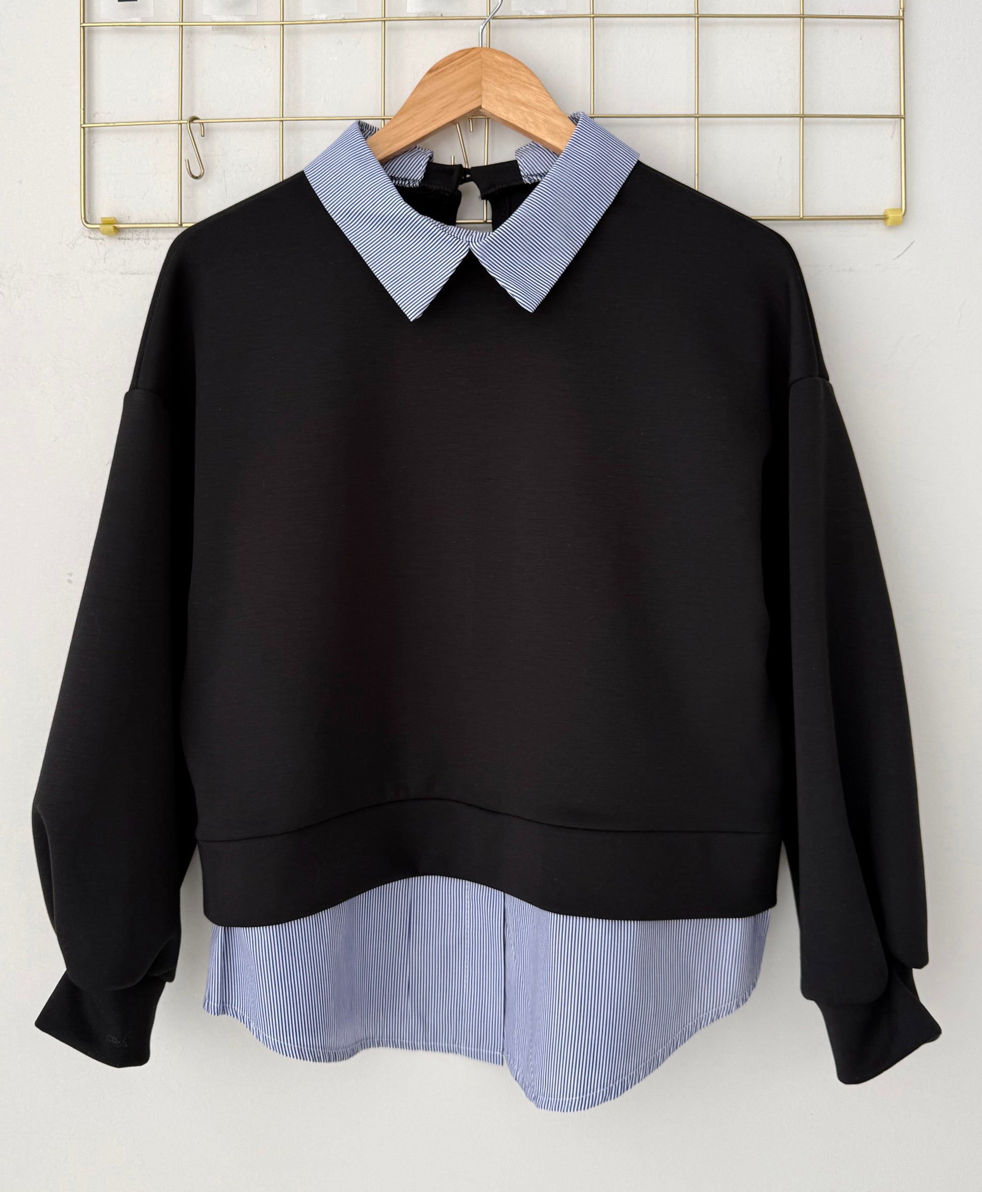 Μπλούζα βαμβάκι με ενσωματωμένο τυπου πουκαμισο ALOVE black