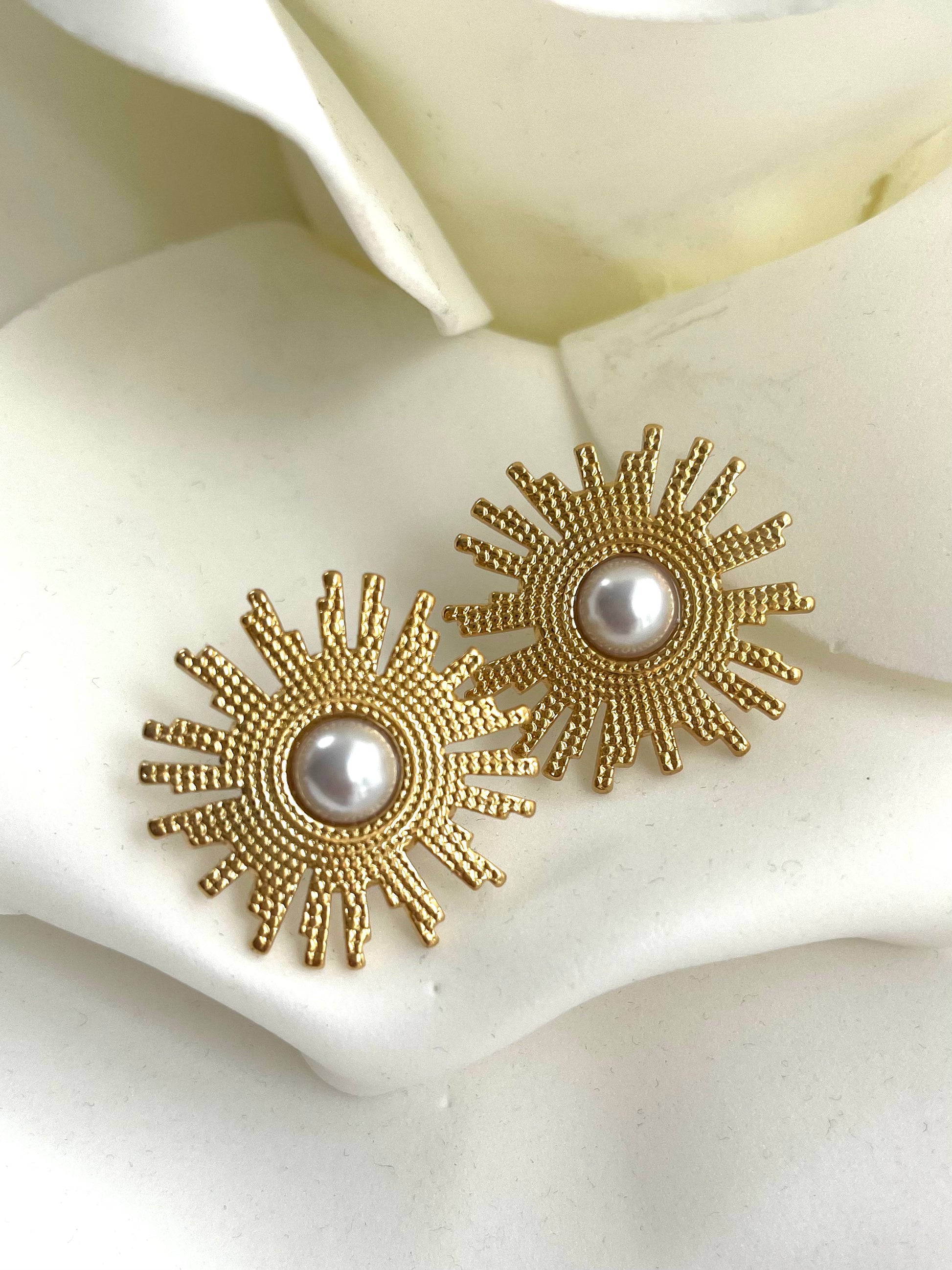 Σκουλαρίκια από ανοξείδωτο ατσάλι επιχρυσωμένο με λεπτομέρειες από πέρλα στο κέντρο